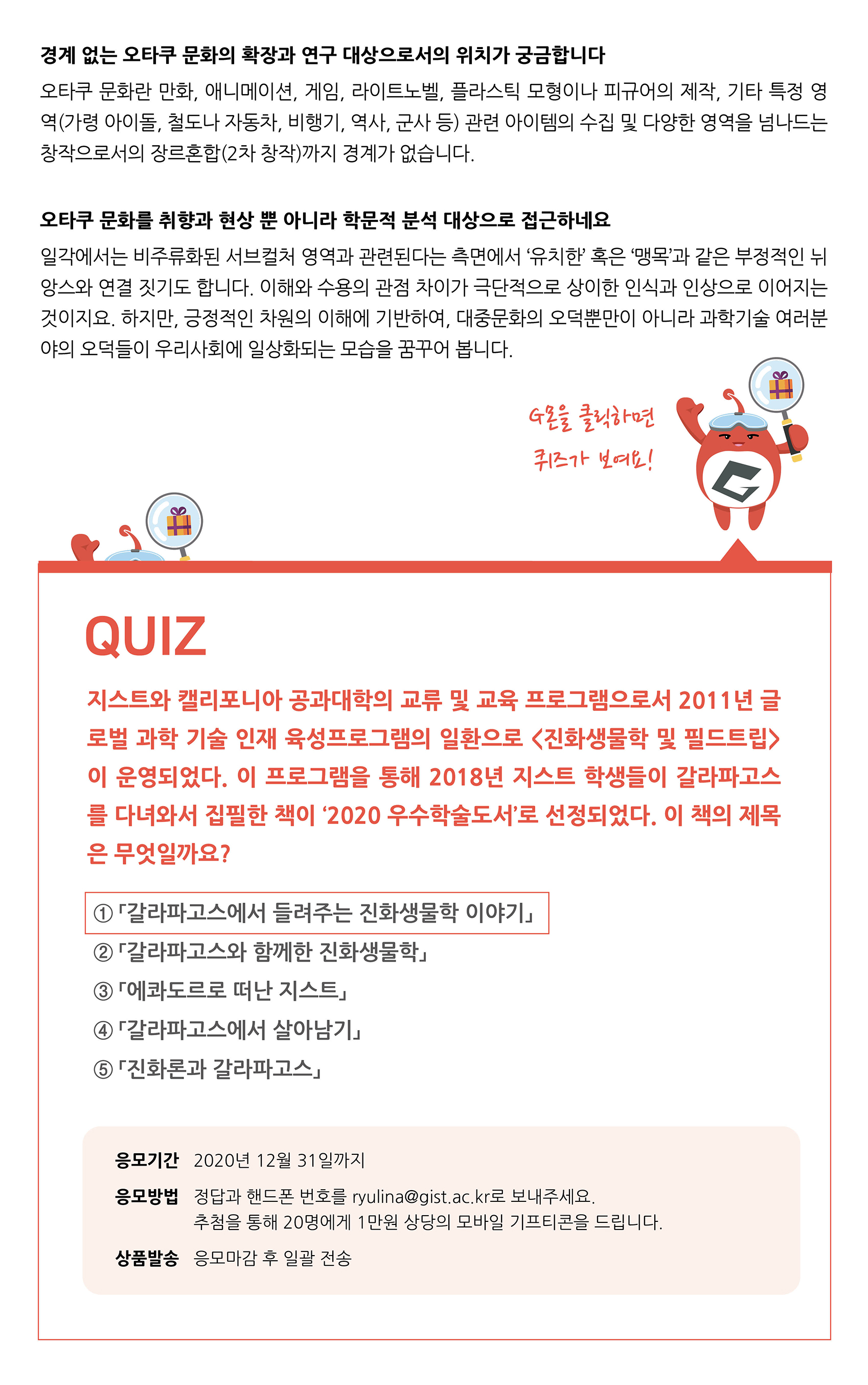 ① 웹진 <GIST>를 읽으면서 숨어 있는 G몬을 찾는다.