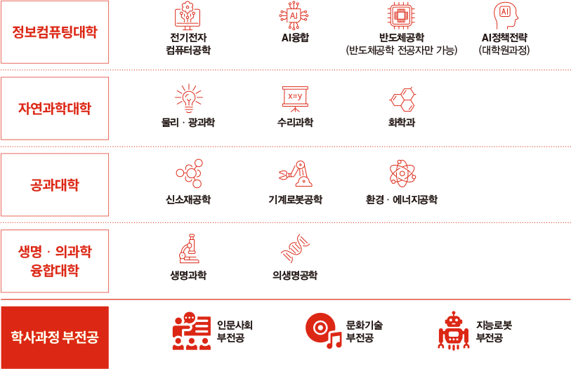 - 전형과정에서 인문사회과학부와 반도체공학과 선택 구분 없이 통합하여 평가