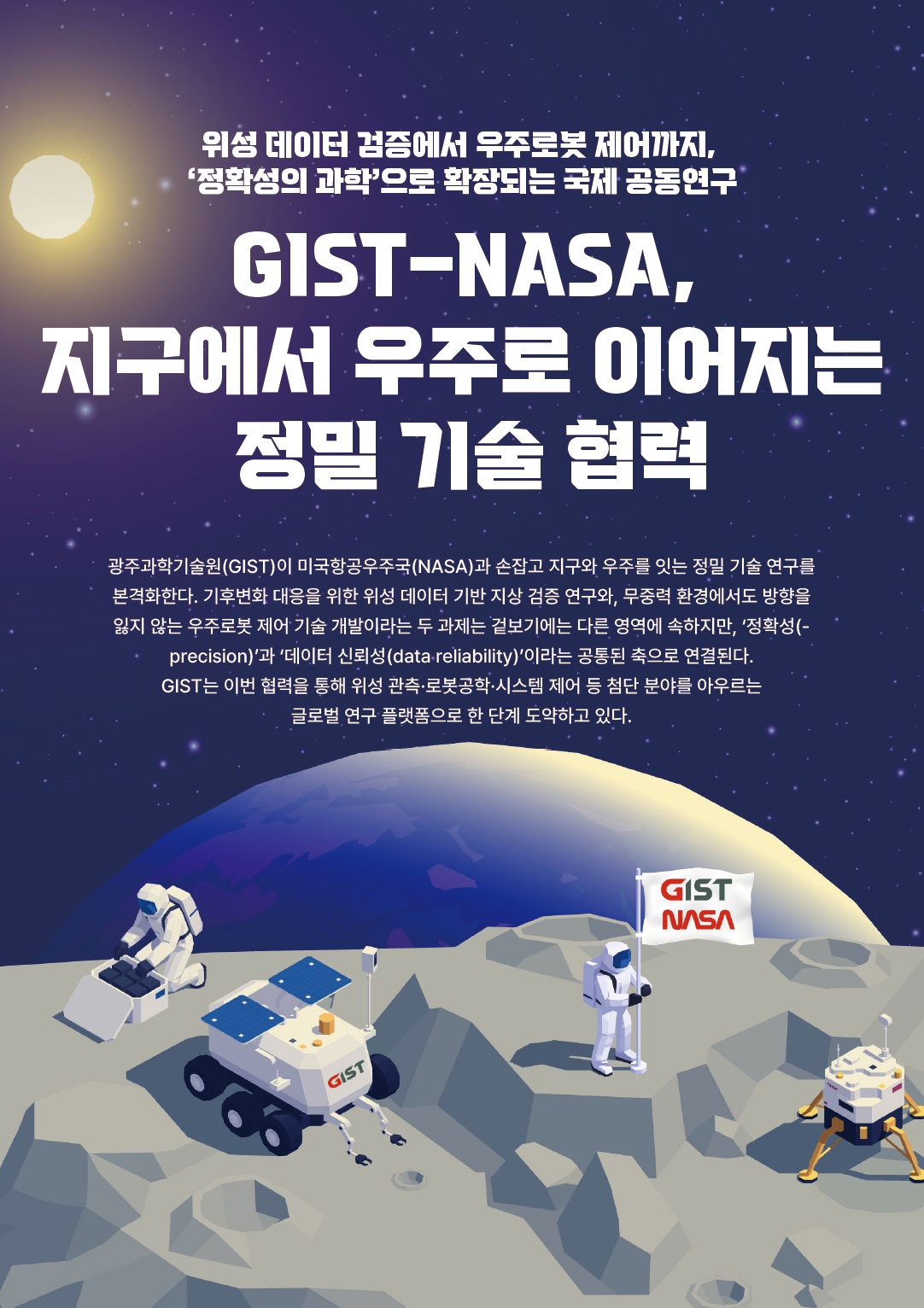 기후 예측과 우주 탐사라는 전혀 다른 목표를 향하지만, 그 중심에는 모두 ‘정확한 데이터가 세상을 바꾼다’는 공통의 인식이 있다. 지구의 환경을 세밀하게 읽어내는 위성 데이터와, 우주의 복잡한 공간을 정밀하게 제어하는 로봇 기술이 만나면서, GIST와 NASA의 협력은 ‘정확성의 과학’이라는 이름 아래 새로운 가능성을 열고 있다.
