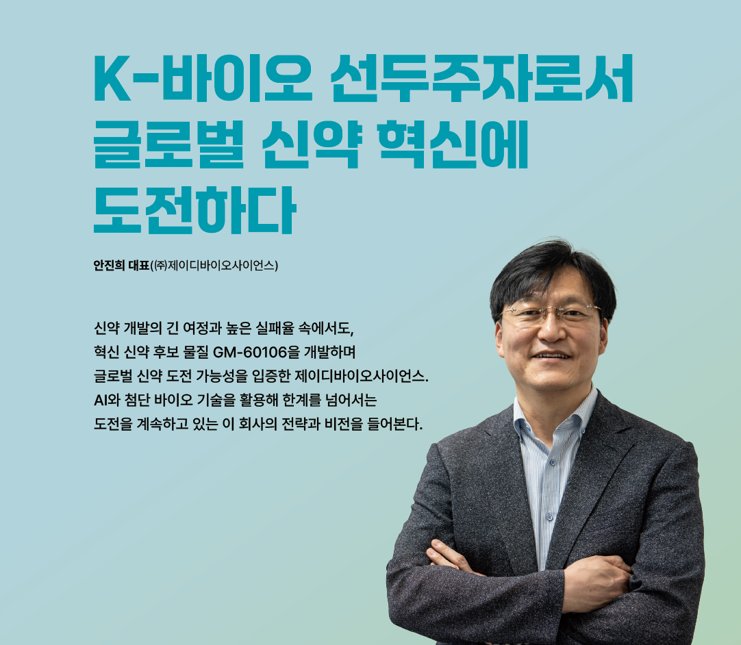 저는 지난 26년간 신약 후보물질 개발 연구를 해왔고, 그 과정에서 국내 제약사에 후보물질을 기술이전한 경험도 있습니다. 연구를 진행하며 만난 뛰어난 의사과학자와 기초연구자들이 발굴한 새로운 타깃 정보를 바탕으로, 실제 약으로 개발할 수 있는 혁신 신약(First-in-class)을 만들고자 했습니다. 제이디바이오사이언스는 지방간염, 염증, 섬유화, 암 등 대사질환 치료제를 개발하는 신약 전문 기업입니다.