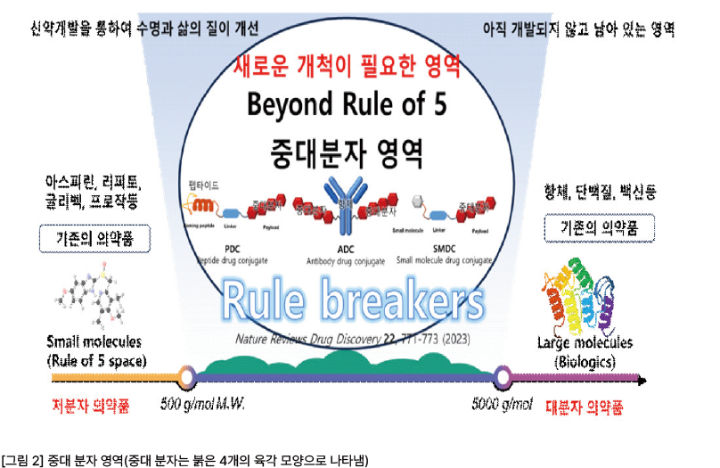 저희 연구센터는 분자량 700~2000g/mol 범위의 화합물을 활용해 기존 약물로 치료가 어려운 질환에 대한 혁신 신약 개발을 목표로 하고 있습니다. 특히 미충족 수요가 높은 분야에서 AI 기술과 연구 인프라를 적극 활용해 신약 후보 물질을 도출하고 있습니다. 주요 연구는 약물 구조 설계, 효능 및 독성 예측 모델 개발, 대규모 데이터 분석을 중심으로 진행되며, 이를 통해 신약 개발 속도와 효율성을 높이고, 비용과 실패율을 줄이는 것을 목표로 하고 있습니다.